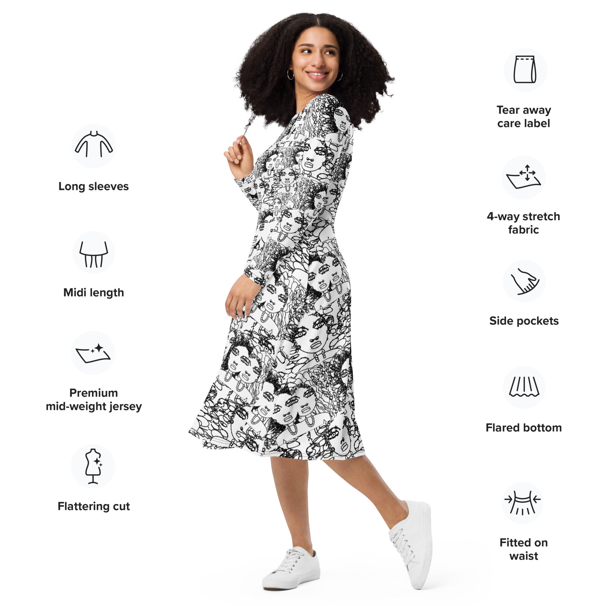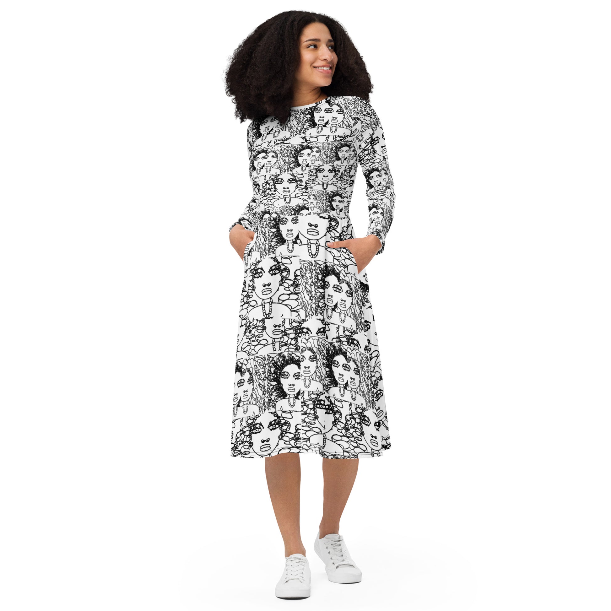 All-over print long sleeve midi dress